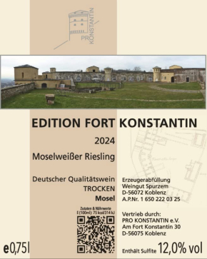 An Weinfreunde, die gerne die „Edition Fort Konstantin“ genießen möchten, gibt der Verein PRO KONSTANTIN sie für 9,50 €/Flasche ab (über Telefon 0261/56116 oder E-Mail an info@pro-konstantin.de).